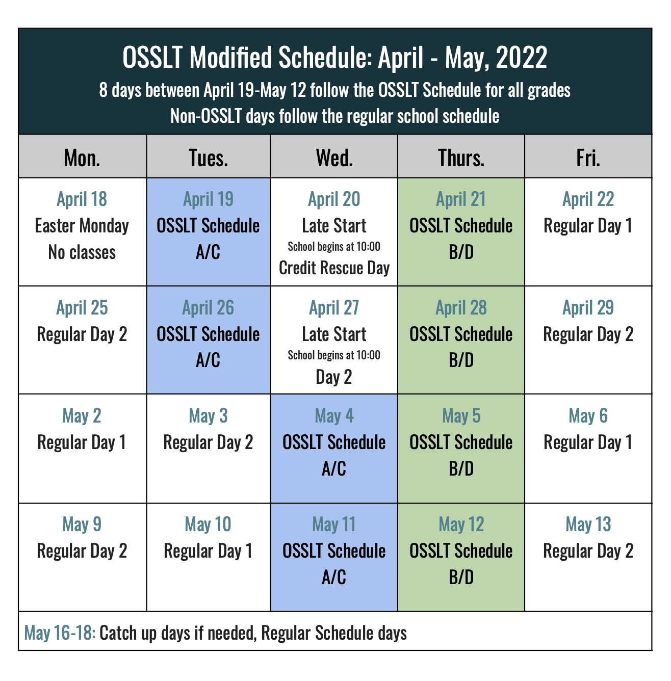 Previous Image Next Image Modified OSSLT Schedule (Student) Modified OSSLT Schedule (Student) Modified OSSLT Schedule (Student)
